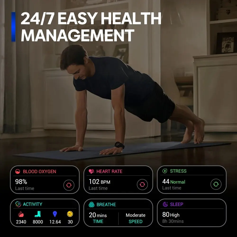 Compatible with iOS and Android devices, the Zeblaze Fit App conducts health and fitness data analysis, features a watch face and app stores, provides system updates for your watch, and much more.
